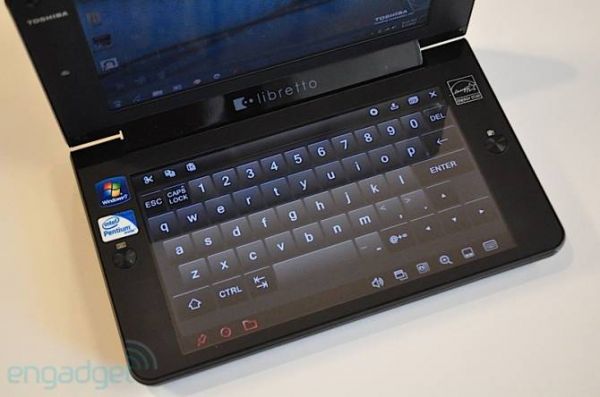 ![]() Нетбук ─ прекрасное решение для тех, кому нужно много ездить, но практически у всех моделей нетбуков есть большой минус, то есть небольшой экран. Одним из решений этой проблемы может стать приобретение новой модели нетбука Toshiba, Libretto W105. Этот нетбук имеет два экрана с диагональю 7" каждый, причём второй экран также может выполнять функции клавиатуры.