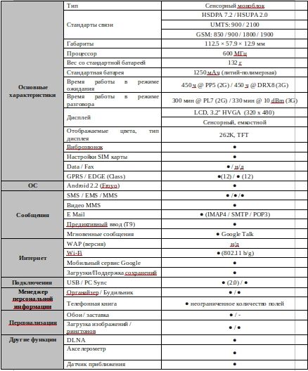 Телефон также оснащен камерой с автоматическим отслеживанием лица и улыбки, широкоформатным 3.2-дюймовым HVGA экраном и аккумулятором емкостью 1500 мАч, позволяющим долгое время работать на одной подзарядке.