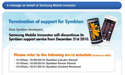Samsung отказывается от SymbianВы все еще сомневаетесь в том, что Samsung решила полностью отказаться от Symbian? Не сомневайтесь. Представители Samsung выступили с официальным заявлением, в котором подтвердили намерение полностью отказаться от Symbian. ![]() 29 октября компания закроет Samsung Symbian Lab. 30 декабря эта же участь ждет форум компании, посвященный Symbian, а к 31 декабря с сайта разработчиков Samsung исчезнет весь контент, связанный с этой операционной системой. Автор: Дмитрий Мухарев Джерело: mobiset.ru Обговорення новиниКоментариев пока никто не оставил. Станьте первым! Попередні новини