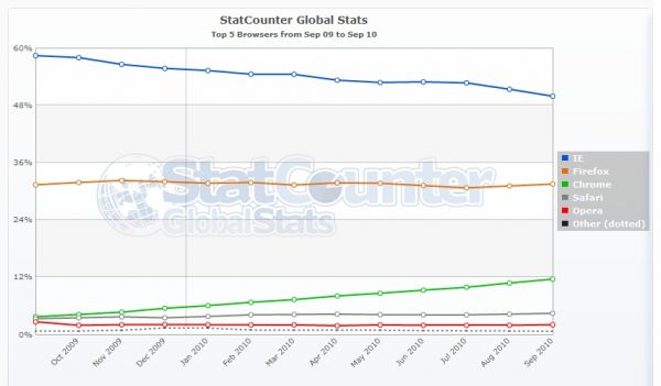 Впрочем, Internet Explorer все еще лидер рынка — в сентябре его доля
