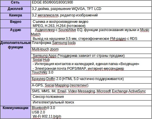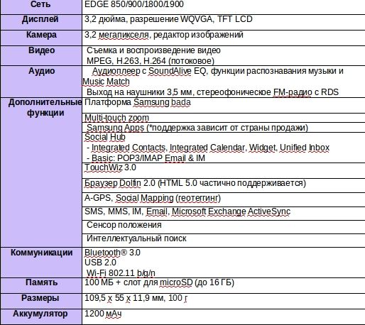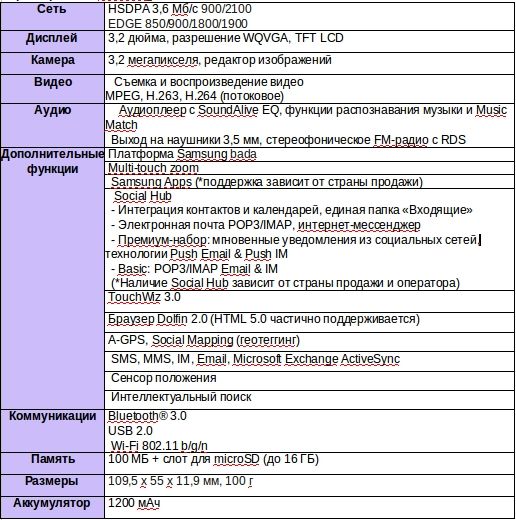 Характеристики Samsung Wave575 * Вся функциональность, возможности, технические характеристики и прочая информация о продукте, включая (но не ограничиваясь) пользу, дизайн, цены, компоненты, производительность, доступность и возможность продукта, может быть изменена без предварительного уведомления. Джерело: SmartPhone.ua Обговорення новиниWersaT: Здравтвуйте. Попередні новини