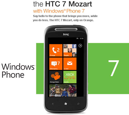 HTC 7 Mozart появился на сайте OrangeНа сайте британского оператора Orange засветился новый WP7-смартфон HTC 7 Mozart. Продажи HTC 7 Mozart в Великобритании должны начаться 21 октября. Причем