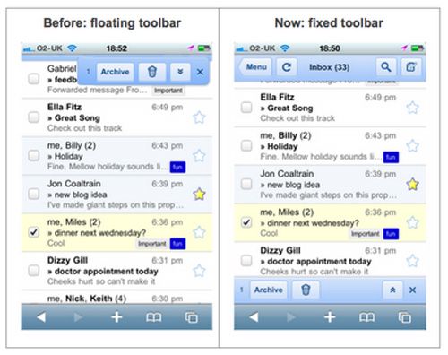 Новый интерфейс делает Gmail, действительно оптимальным клиентом для использования на iPhone-подобных устройствах.