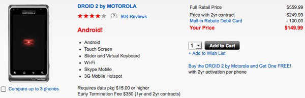 Снижены цены на Motorola Droid 2 и HTC Droid IncredibleПопулярные модели телефонов Motorola Droid 2 и HTC Droid Incredible падают в цене. Стало известно, что американский оператор Verizon отныне