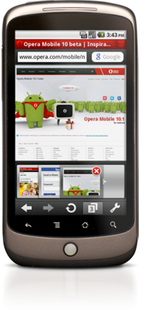 Вышла бета-версия Opera Mobile 10.1 для AndroidOpera Mobile для Android имеет схожие возможности с версиями браузера для других мобильных платформ. Она обладает поддержкой multi-touch, имеет возможности масштабирования, а также менеджеры загрузки и паролей.
