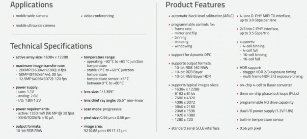 Сенсор OVB0A має оптичний формат 1/1,395 дюйми або для простоти 1/1,4 дюйми. Тобто він досить великий, але менший за той самий Samsung ISOCELL HP1, при цьому він такий самий, як ISOCELL HP3. Розмір пікселя становить 0,56 мкм. Датчик підтримує 16-осередковий бінгінг, так що фотографії виходять з роздільною здатністю 12,5 Мп. Відео можна знімати в 4K при 120 кадрах/с, підтримується 8K при 30 кадрах/с. Датчик має з'явитися у смартфонах у четвертому кварталі.