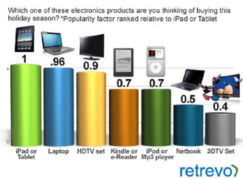 Планшет станет самым желанным подарком для американцевЭти Рождественские праздники могут оказаться для Apple и ее iPad очень прибыльными. Исследователи Retrevo поприставали к американским пользователям с вопросом, какую электронику они хотели бы увидеть у себя дома. И больше всего людей высказалось за iPad или другой планшет. ![]()