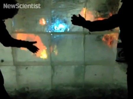 очень необычный сенсорный экран, сделанный изо льда. Естественно, лед –