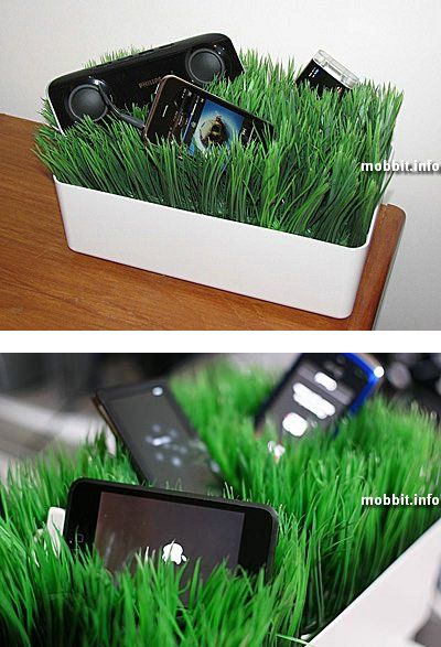 Оригинальная зарядная станция для телефонов и других гаджетовОчаровательная декоративная лужайка в аккуратном белом ящичке… Погодите презрительно отворачиваться: все не так просто, как кажется. Зеленая трава – искусственная, а сам ящичек представляет собой зарядную станцию для ваших мобильных гаджетов. В специальном отсеке под слоем «дерна» очень удобно прятать удлинитель с несколькими розетками, провода и адаптеры, тогда как сами телефоны и плееры элегантно размещаются на виду, среди ярко-зеленых стеблей. Размеры ящика - 28 x 18 x 11 см, то есть гаджетов туда поместится штуки 3-4. Главная проблема тут – при очередном поливе комнатных растений вовремя остановиться... Оригинальная станция обойдется вам в 25 долларов. ![]()
