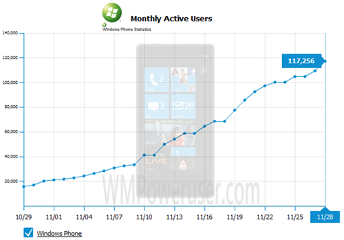 имеется около 120 тысяч пользователей WP7-приложения для Facebook.