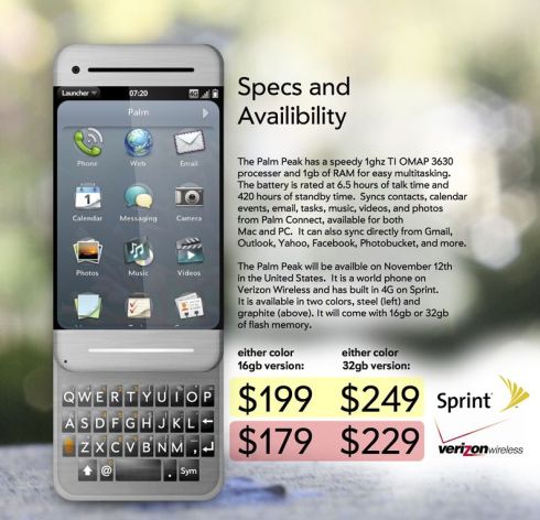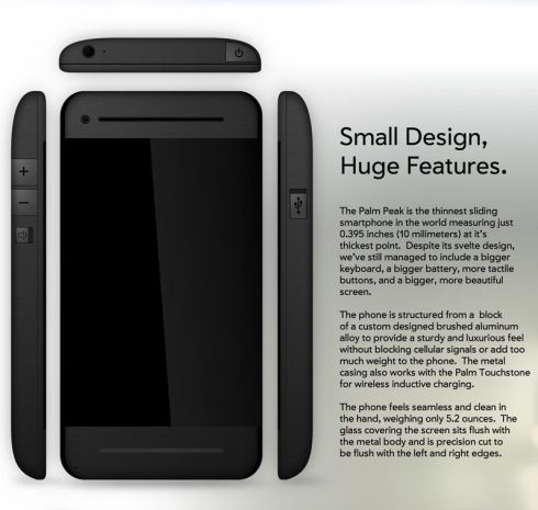 Palm Peak - черты iPhone 4 и Palm Pre в одном концептеPalm Peak задумывался как компактный слайдер толщиной всего в 10 мм. При