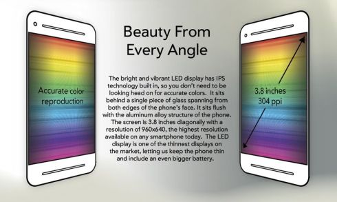 В концепте стоит сенсорный LED IPS-дисплей с диагональю 3,8-дюйма и