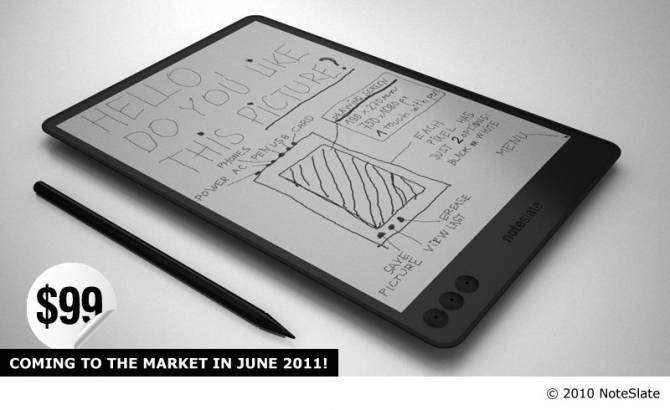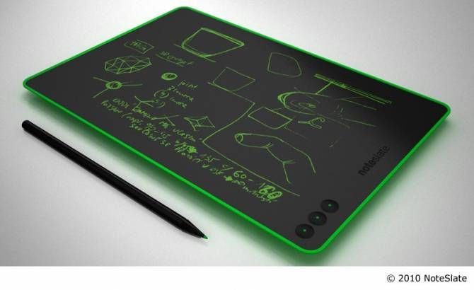 NoteSlate - цветная электронная бумага на планшете![]() Новый концептуальный планшет имеет дисплей диагональю 13 дюймов с разрешением 750 х 1080. Изначально на устройстве будет предустановлен софт для создания рисунков, проигрывания музыки и хранения заметок. В версии 1.5 будет добавлен PDF редактор, а в 2.0 приложение для распознавания рукописного текста Разработчики обещают 180 часов работы от одного заряда батареи и полностью открытый программный код. В продаже, которая начнется в июне, будут доступны версии с монохромным дисплеем, и цветные с синими, зелеными, красными чернилами, а также вариант со всеми четырьмя цветами. Черно-белая версия обойдется всего в $ 99, цена цветных пока точно неизвестна.