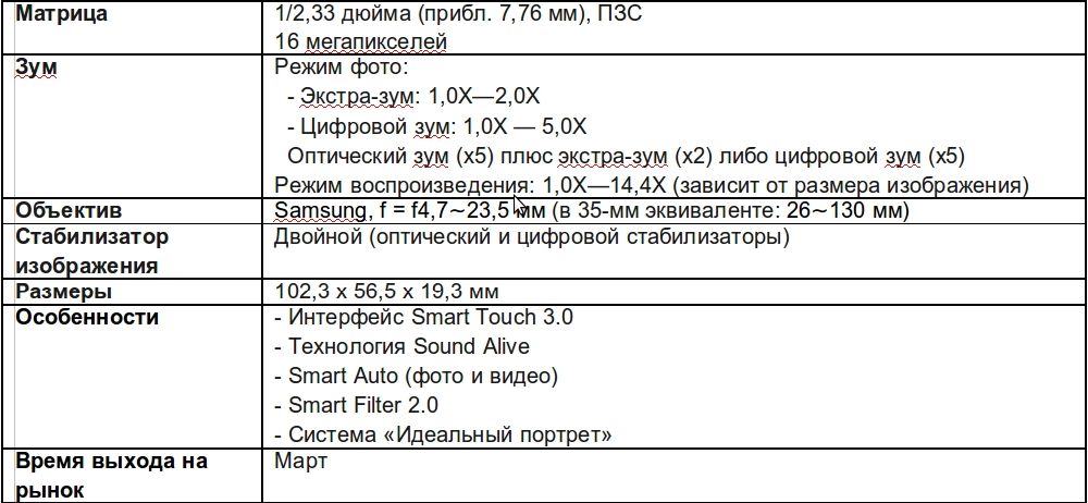 В тонком и легком корпусе новинки заключена высококачественная 16-мегапиксельная матрица, которая вместе с широкоугольным объективом с 5-кратным зумом гарантирует четкие и яркие фотографии. Новый интерфейс Smart Touch 3.0 и универсальный 3-дюймовый сенсорный обеспечивают новый уровень взаимодействия с пользователем: доступ к настройкам съемки стал еще проще, благодаря чему вы не упустите ни одного ценного момента. Интеллектуальный режим Smart Auto автоматически настраивает камеру таким образом, чтобы групповые снимки друзей на вечеринках всегда получались идеальными. «Выпуск ST6500 – важный шаг для укрепления позиций Samsung как новатора на рынке цифровых фотокамер и очередное свидетельство нашей приверженности инновационному дизайну. Камера отличается роскошным дизайном и самыми передовыми технологиями, подчеркивая наше стремление предлагать потребителям наиболее стильные и функциональные продукты. Модель ST6500 – это уникальный продукт, способный привнести новые веяния в дизайн фотоаппаратов, в котором сегодня доминируют прямые линии», — отметил Хюнхо Чанг, исполнительный вице-президент и руководитель подразделения Digital Imaging Business компании Samsung Electronics. Новинка позволяет также снимать видеоролики высокой четкости с разрешением 720p и дополнительным звуковым сопровождением. С помощью технологии Smart Filter 2.0 можно использовать в видеороликах фильтры с профессиональными опциями цвета, благодаря которым пользователи смогут создавать творческие и инновационные фильмы. Если стандартные цвета видео вас не вдохновляют, то модель ST6500 поможет максимально раскрыть ваши творческие способности и сделает съемку настоящим развлечением. Спецификации ST6500: