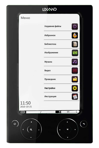 Электронные книги за последнее время набрали значительную популярность у отечественных пользователей. Спрос рождает предложение, поэтому не стоит удивляться появлению новых имен на этом рынке. Компания «Лаборатория «Лександ»», владелец популярного навигационного бренда Lexand, также решила заняться продажами ридеров и недавно представила собственную линейку электронных книг. Пока она включает две разноплановые модели, однако в будущем их, скорее всего, станет значительно больше – модельный ряд навигаторов Lexand когда-то тоже был невелик, а сейчас он насчитывает более двух десятков устройств в различных формфакторах. Однако перейдем непосредственно к ридерам Lexand. ![]() Lexand LE-106 Старшая модель, Lexand LE-106, представляет собой традиционную «читалку» с большим количеством поддерживаемых форматов файлов и монохромным 6-дюймовым экраном, выполненным по технологии электронных чернил (E-Ink Vizplex третьего поколения). Младшая модель, Lexand LT-105, – противоположность Lexand LE-106, сочетающая в себе функции электронной книги, медиаплеера и цифровой фоторамки. Ее отличительной особенностью является цветной TFT-экран, а также поддержка воспроизведения видео. Как уже говорилось выше, в модели Lexand LE-106 используется экран на базе электронных чернил, разрешение которого составляет 600 на 800 точек. Дисплеи E-Ink не имеют раздражающей глаза мерцающей подсветки – поэтому они обеспечивают ощущения, близкие к обычной бумажной книге. Заряд аккумулятора расходуется весьма экономно, поскольку энергия затрачивается только при обновлении изображения на экране (например, при переходе на новую страницу). В результате заявленного компанией ресурса в 12 тыс. перелистываний виртуальных «страниц» хватит для чтения порядка 20 книг объема Анны Карениной. В общем, единожды зарядив ридер, им можно пользоваться недели три, если не целый месяц. В модели Lexand LT-105 применяется широкоформатная TFT-матрица с разрешением 480 на 800 пикселей, диагональю 5 дюймов и цветовой палитрой в 65 тыс. оттенков. Этот дисплей вполне годится для просмотра фильмов и видеороликов, правда, использование TFT-экрана вызывает усталость глаз при долгом чтении («благодаря» подсветке), а также приводит к малому времени автономной работы – до 6-8 часов. Собственно, с помощью Lexand LT-105 можно читать лишь время от времени, это скорее не устройство для чтения электронных книг, а медиаплеер с функциональностью «читалки» среднего класса. Достаточную производительность обоих ридеров обеспечивает одна и та же аппаратная платформа Ingenic JZ4755 с тактовой частотой процессора 400 МГц. Объем пользовательской памяти составляет 2 Гб, если такой емкости недостаточно, можно воспользоваться картами памяти MicroSD. В качестве приятного бонуса к функциональности обеих моделей выступает стандартный 3,5-миллиметровый аудиоразъем. В модели Lexand LT-105 имеется еще и динамик, позволяющий просматривать видео без подключения наушников. Lexand LE-106 поддерживает 11 наиболее популярных форматов текстовых файлов: PDF, DOC, XLS, TXT, ePub, FB2, HTML, TCR, PalmDoc, CHM и OEB. В дополнение к ним ридер воспроизводит музыкальные композиции в MP3, WMA, WAV и AAC, а также изображения в форматах Jpeg, BMP, PNG, GIF, TIFF. ![]() Lexand LT-105 Младшая модель Lexand LT-105 также обладает поддержкой наиболее распространенных типов файлов: текстовых – TXT, HTML, FB2, ePUB, PDF, PDB, DOC и RTF (обратите внимание, что их список короче, чем в случае Lexand L