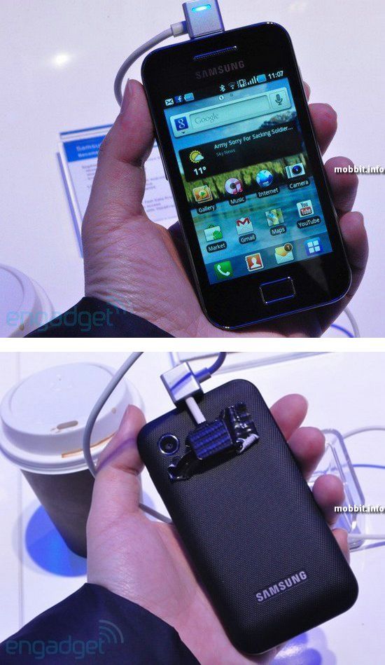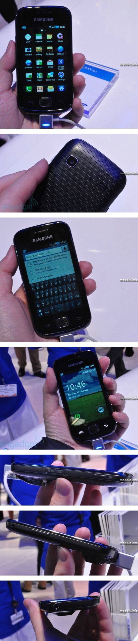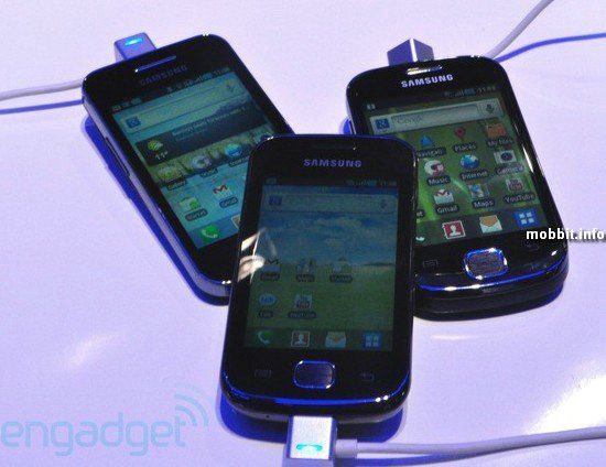Samsung Galaxy Ace, Gio, Fit и mini - линейка бюджетных смартфонов на Android 2.2Компания Samsung выпустила целую линейку бюджетных смартфонов на Android 2.2: Galaxy Ace, Galaxy Gio, Galaxy Fit и Galaxy mini. Самый «продвинутый» из них – это Galaxy Ace: с 800-мегагерцовым процессором, 3,5-дюймовым HVGA LCD дисплеем, 5 Мп камерой со вспышкой. Интерфейс в данном случае – TouchWiz 3.0. Galaxy Gio обладает также 800-мегагерцовым процессором, но уже 3,2-дюймовым дисплеем и 3 Мп камерой (без вспышки). У Galaxy Fit 3,3-дюймовый QVGA дисплей, но 600-мегагерцовый процессор и 5 Мп камера. Самый дешевый в линейке смартфон Galaxy mini оснащен 3,14-дюймовым QVGA дисплеем, 600-мегагерцовым процессором, 3 Мп камерой. Все модели оснащены клавиатурой SWYPE. Фотографии каждой из моделей и видео - далее.