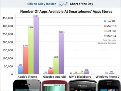 На сегодняшний день ассортимент Apple App Store составляет 350000 приложений, а в Android Market предлагаются 250000 приложений. Таким образом, пока App Store сохраняет лидирующие позиции, но ситуация может измениться уже в ближайшее время. Чтобы подтвердить это достаточно посмотреть динамику развития этих магазинов за последние полгода. В октябре прошлого года онлайновый магазин Apple состоял из 285 тысяч приложений, а в Android Market насчитывалось «всего» 100 тысяч приложений. Но за последующие 6 месяцев ассортимент Android Market вырос примерно на 150 тысяч приложений, тогда как в Apple App Store добавилось всего около 65 тысяч новых позиций. Тем не менее, в самом Android Market пока не все гладко: в нескольких приложениях были обнаружены вирусы, а некоторые девелоперы умудрились немного видоизменить чужие приложения и продавать их как свои. Таким образом, над цензурой Google еще придется поработать. Джерело: mobime.ru Обговорення новиниКоментариев пока никто не оставил. Станьте первым! Попередні новини