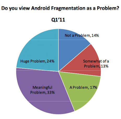 Большинство разработчиков обеспокоены фрагментированностью AndroidИсследование, проведенное компанией Baird, лишний раз указало на основной недостаток Google Android. Выяснилось, что 24% разработчиков считают фрагментированность Android огромной проблемой этой ОС, а 33% респондентов называют это значительной проблемой. Еще 13% опрошенных отзываются о фрагментированности Android, как о незначительной проблеме, а 17% называют ее обычной проблемой. Напротив, 14% разработчиков не видят в фрагментированности ничего особенного. ![]() В то же время разработчики признали простоту создания программ как под Android, так и под iOS. По крайней мере, по этому показателю эти операционные системы могут дать фору и BlackBerry и Symbian. В ходе исследования работниками Baird было опрошено 250 человек. 71% из них писали приложения для Android, 62% - для iOS, а 27% разработчиков не заинтересовала ни одна из этих платформ. Автор: Дмитрий Мухарев Джерело: mobiset.ru Обговорення новиниОлег: На арену выходит BADA OS!!! Всем смирно Попередні новини