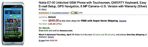 В Amazon Nokia E7 предлагается за 649 долларовСмартфон Nokia E7, который также можно охарактеризовать как самый мощный коммуникатор появился на Amazon по цене в 649 долларов, что даже дешевле, если оформлять на новую трубку предварительный заказ, когда стоимость составит 679 долларов. ![]() Использованы материалы: http://www.engadget.com Джерело: SmartPhone.ua Обговорення новиниКоментариев пока никто не оставил. Станьте первым! Попередні новини