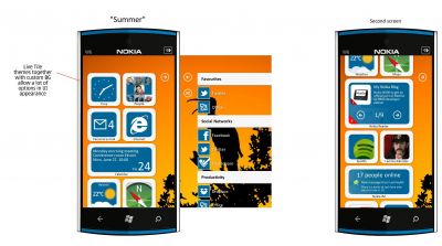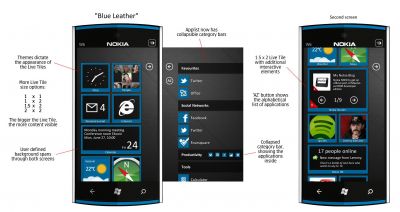 Microsoft и Nokia стали стратегическими партнерами, но даже в этом случае финская компания не сможет значительно изменять стандартный интерфейс Windows Phone 7. Лакман попытался изобразить, как Nokia могла бы выделиться среди конкурентов, внеся небольшие дополнения в графическую оболочку. Он представил две темы – Blue Leather и Summer.