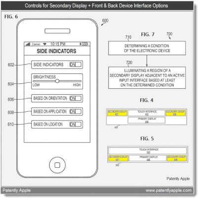 Ресурс PatentlyApple рассказал о новом патенте компании Apple, который рассказывает о так называемой "умной рамке". Если задумка будет реализована, то такой интересный компонент могут получить iPhone и другие мобильные устройства компании. Речь идет о том, чтобы прямо в рамку, обрамляющую дисплей, встроить дополнительный сенсорный экран. На нем будут отображаться различные пиктограммы, элементы управления, индикаторы основной информации и тому подобное, это позволит заметно расширить возможности сенсорного интерфейса. ![]()