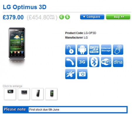 LG Optimus 3D в продаже с 6 июня через британский Clove