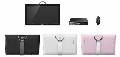 Sharp Aquos Freestyle получил 20.0-дюймовый экран на светодиодах, разрешением 1366 x 768 и модуль Wi-Fi с блоком настройки цифрового телевиденья, но с возможностью принимать и аналоговый сигнал. Причем просматривать изображения можно как в альбомной, так и в книжной ориентации.