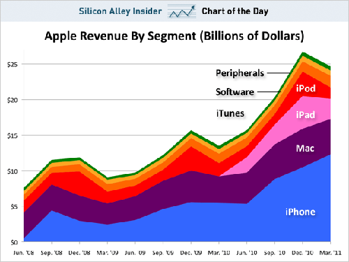 iPhone приносит Apple все больше денег. Напротив, доля компьютеров Mac