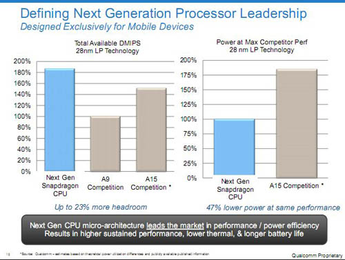 Qualcomm готовит мобильные процессоры, превосходящие Cortex A-15Компания Qualcomm работает над новыми мобильными чипсетами с 28-нм архитектурой Krait. Всего в разработке находится 4 мобильных процессора - MSM8270, MSM8930, MSM8960 и APQ8064. ![]() Эти процессоры будут в 5 раз производительнее предыдущих моделей и получат в 4 раза более мощные графические возможности. Вычислительные возможности процессоров будут на 23% превосходить чиспеты Cortex A-15 и станут на 43% экономичнее их. Чипсет MSM8960 получит поддержку 3G и 4G-сетей. Его продажи начнутся в конце весны. А чипсеты APQ8064, MSM8270 и MSM8930 должны появиться до конца года. Автор: Дмитрий Мухарев Джерело: mobiset.ru Обговорення новиниКоментариев пока никто не оставил. Станьте первым! Попередні новини