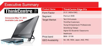 Lenovo ThinkCentre Edge 91Z предложит 21,5-дюймовый дисплей, который может дополняться дискретной видеокартой ATI, процессором Intel Core i7, 80 Гб на жестком диске, Wi-Fi, HDMI, беспроводной клавиатурой и мышью. Причем время загрузки операционной системы составит всего 20 секунд.
