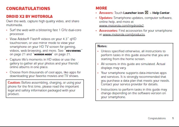 На данном портале уже имеется руководство пользователя, в котором подтверждается информация о наличии у Motorola DROID X2 двухъядерного процессора на 1GHz, а также 4.3-дюймового qHD дисплея.