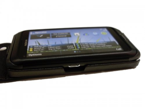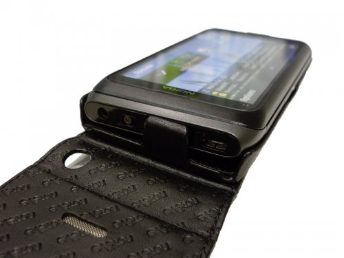 Для любителей слушать музыку чехол не создаст никаких дополнительных неудобств, для разъема для наушников в чехле предусмотрено отверстие. На задней стенке отвертие, предназначенное для системы крепежа для ношения на поясе, закрыто металлической заглушкой с логотипом Noreve.