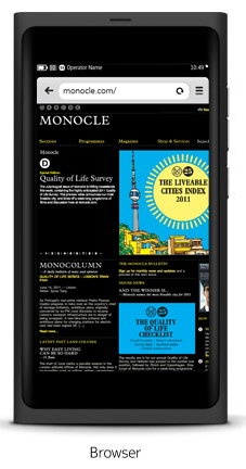 Компания Nokia официально представила модель N9, первый смартфон на MeeGo Harmattan 1.2, и у нас, наконец, появилась возможность оценить интерфейс. На скриншотах показаны клавиши набора, вызов, почта, список контактов, чат, часы, календарь, заметки, поиск, браузер, камера, музыкальный плеер, галерея, Ovi Store, карты. Прошу заметить, что статичные изображения не дают представления о жестах, анимации и плавности переходов из одного меню в другое. Nokia отмечает, что удобный и естественный интерфейс N9 – чуть ли не главное его достоинство.