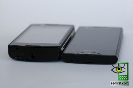 Размеры Xperia Ray составляют 111 x 53 x 9,4 мм (размеры Xperia Arc – 125 x 63 x 8,7 (10,9) мм, вес – 100 г (117 г у Arc). В корпус встроена алюминиевая рамка, подчеркивающая небольшую толщину устройства.