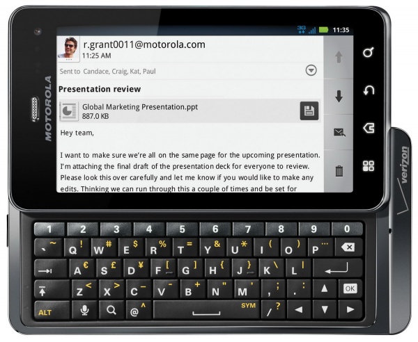 Согласно Motorola, благодаря новому процессору Droid 3 на 27% быстрее в многозадачности, чем Droid 2. Кроме того, разрешение экрана выше на 26%, а графический чип производительнее на 30%. ![]() ![]() ![]() Онлайн-продажи Droid 3 уже стартовали, в розничных магазинах Verizon смартфон появится 14 июля. Цена с контрактом на два года – $199. Мы, однако, продолжаем ждать анонса европейской версии - Milestone 3. Технические характеристики Motorola Droid 3: