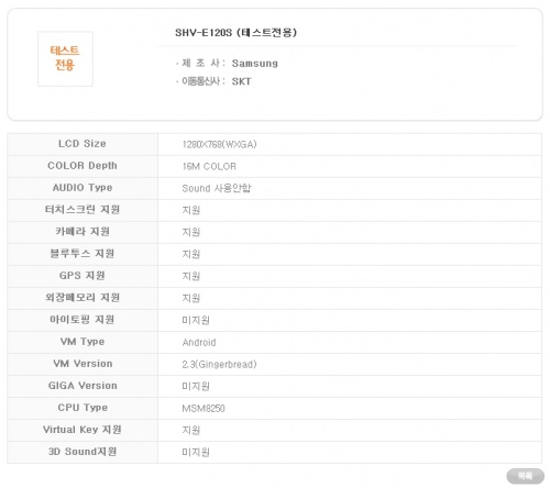 В корейском магазине приложений T-Store появилась запись о не анонсированном по состоянию на сегодняшний день устройстве Samsung SHV-E120S.