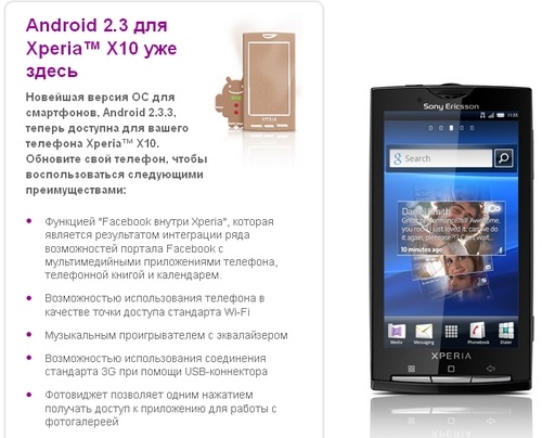 Компания Sony Ericsson выпустила долгожданное обновление для модели Xperia X10. Прошивка с Android 2.3.3 (Gingerbread) доступна для загрузки через PC Companion.