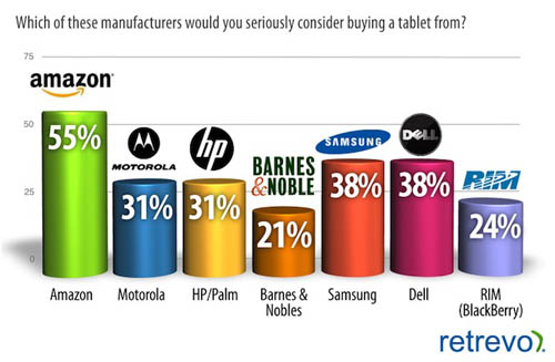 При этом 55% респондентов отдали бы предпочтение планшету Amazon, тогда