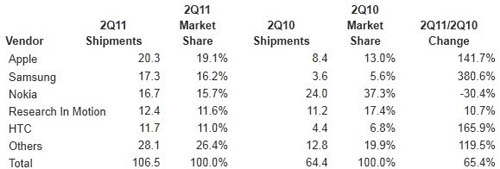IDC: Samsung все-таки вторая на рынке смартфоновАналитики IDC все-таки поставили Samsung на второе место в списке крупнейших производителей смартфонов. А весь рейтинг производителей, составленный IDC, выглядит следующим образом. ![]() На первом месте с 20,3 млн. поставленных смартфонов идет Apple. Благодаря значительному увеличению объема поставок с прошлогодних 8,4 млн., доля этого производителя на рынке выросла до 19,1%. Следом за Apple расположилась Samsung с 17,3 млн. поставленных гаджетов и 16,2% рынка. А на третьем месте идет Nokia - 16,7 млн. смартфонов и 15,7% рынка. Оставшиеся два места в пятерке лидеров достались RIM и HTC, занявшим, соответственно, 11,6 и 11 процентов рынка и поставившим 12,4 и 11,7 млн. смартфонов. На других производителей пришлось 26,4% рынка и 28,1 млн. смартфонов. Автор: Дмитрий Мухарев Джерело: mobiset.ru Обговорення новиниКоментариев пока никто не оставил. Станьте первым! Попередні новини
