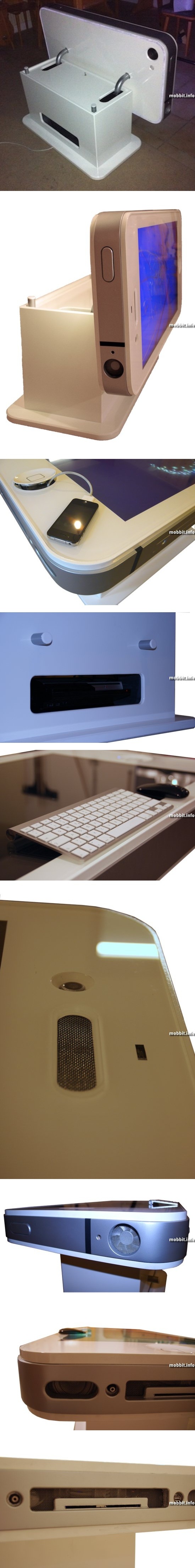 iTableous – «гигантский iPhone»У людей порой странные фантазии. Некто Benjamin Bachmeier решил превратить 40-дюймовый Full HD LCD-дисплей в гигантскую копию iPhone. И сделал это! Получился стол с сенсорной поверхностью под названием iTableous. Что ж, внешний вид «столешницы» детально повторяет вид «яблочного» смартфона, и все огромные кнопки полностью функциональны, но на этом сходство, к сожалению, заканчивается. iTableous не поддерживает multi-touch и работает под управлением не iOS, а Mac OS X 10.6.7 и Windows 7 Professional. В числе прочих характеристик модели 4 ГБ DDR2 RAM, накопитель на 500 ГБ, 5,7-мегапиксельная камера (может записывать видео в разрешении 720p), порты USB, HDMI и коннектор 30-pin. Взглянуть на это чудо техники можно в галерее фото и на видео далее. ![]()