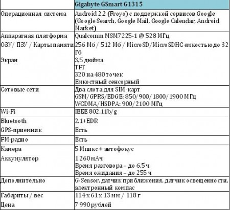 Компании «Вобис Компьютер» и Gigabyte Communications объявляют о начале продаж в России смартфона Gigabyte GSmart G1315. Новинка является третьим доступным на российском рынке Android-смартфоном с поддержкой двух SIM-карт. Отечественный рынок «двухсимочных» Android-смартфонов зародился в июле 2011 года. Первой моделью с таким функционалом стал Gigabyte GSmart G1310, затем в начале августа в России начались продажи смартфона Highscreen Cosmo Duo, представленного компанией «Вобис Компьютер» (владелец бренда Highscreen). Анонсируемый сегодня Gigabyte GSmart G1315 является третьим в России «андроидфоном» с поддержкой двух SIM-карт. Gigabyte GSmart G1315 – модель среднего класса на базе Android 2.2. Смартфон оснащен одним радиомодулем, то есть во время разговора или работы с Интернетом активной остается одна SIM-карта. В режиме ожидания доступны обе карточки. Одна из них обеспечивает работу в сетях 2G (GSM/GPRS/EDGE) и 3G (UMTS/HSDPA), вторая – только 2G. Gigabyte GSmart G1315 – близкий аналог предыдущей модели Gigabyte GSmart G1310, получивший 3,5-дюймовый сенсорный экран вместо 3,2-дюймового. Разрешение дисплея осталось прежним – 320 на 480 точек (стандарт для платформы Android). Аппарат оснащен 5-мегапиксельной камерой, приемником спутниковой GPS-навигации и модулями Wi-Fi и Bluetooth. Российским дистрибутором Gigabyte GSmart G1315 выступает компания «Вобис Компьютер». Продажи новинки начались во второй половине августа 2011 года. Розничная цена модели - 7 990 рублей. В комплект поставки смартфона входят зарядное устройство, USB-кабель, проводная гарнитура. Аппарат обеспечивается годичной гарантией от компании «Смарт-Сервис» (http://www.smart-service.ru/). Характеристики Gigabyte GSmart G1315: