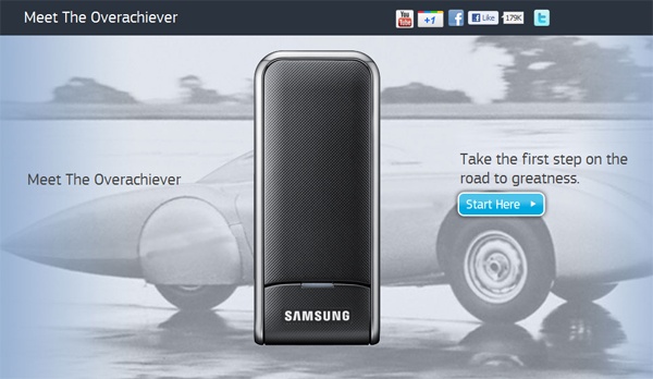На web-сайте Samsung страничка для Overachiever начинается со слов "первый шаг на пути к величию", на портале также предлагается оформить подписку на последние новости о проекте Samsung Overachiever и выбрать одного из мобильных операторов, в перечне которых имеются AT&T, Verizon, Sprint и T-Mobile.