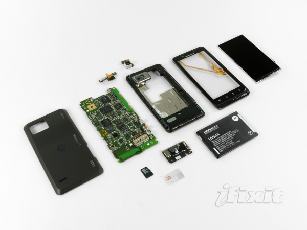 На прошлой неделе Motorola и Verizon запустили смартфон Droid Bionic. Это Android-телефон с 8-Мп камерой, функцией записи Full HD-видео, двухъядерным процессором, 1 Гб памяти и поддержкой 4G LTE. Сайт iFixit разобрал смартфон, оценив его ремонтопригодность в 9 баллов из 10. Специалистам понравилось, что при замене SIM или карты памяти MicroSD не требуются специальные инструменты, батарея снимается в два счета, в телефоне используется небольшое количество зажимов и винтиков, многие компоненты можно заменить индивидуально, а защитное стекло можно заменить без замены тачскрина. Минусы следующие: чтобы заменить переднюю панель нужно разобрать весь телефон, а чтобы заменить камеру нужно разобрать материнскую плату.