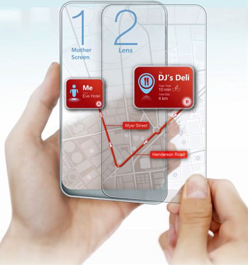 Прозрачный концепт с двумя экранами и расширенной реальностью