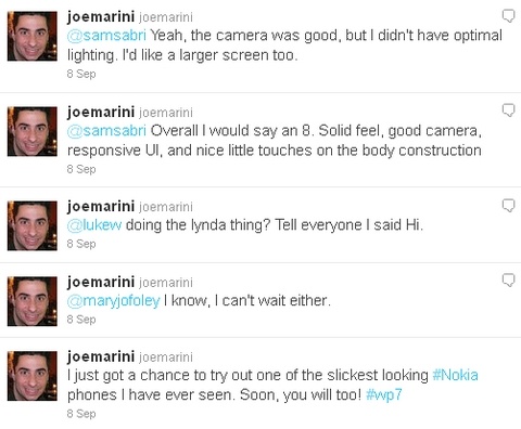 Первый проект Nokia на Windows Phone окружен утечками и компания, похоже, не сильно беспокоится об этом. Однако стратегический партнер в лице Microsoft внимательно защищает интересы своей платформы. Не так давно Джо Марини (Joe Marini) главный программный менеджер по веб-платформе в команде Windows Phone, оставил в Twitter несколько записей, посвященных Nokia с WP7.