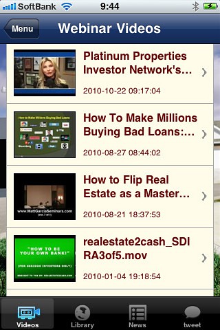 Real Estate Investment — образовательное приложение, которое мы нашли в рубрике финансы магазина приложений компании Apple. Навигация в приложении довольно простая, есть разделы с обучающими материалами, по которым вы будете перемещаться и просматривать статьи. В разделе библиотека вы найдете большой список статей различной тематики. Коллекция более чем из 1500 вебинаров доступных для просмотра в разделе видео, будет особенно полезна тем, кто не слишком любит читать. Одной из самых интересных вкладок приложения можно назвать новости, где вы сможете узнать тенденции рынка и прочитать слухи о сделках или информацию о том разделе инвестиций, который называется real investment. И последний заключительный раздел — это Twitter лента событий мира недвижимости.Так что вам обеспеченна молниеносная новостная поддержка. Приложение будет полезно для ознакомления со стратегиями инвестирования, вводными курсами, маркетингом, рисками и другой информацией, которой необходимо владеть начинающему специалисту в этой сфере. Приложение стоит всего 1.99$ и требует хорошего знания английского языка.