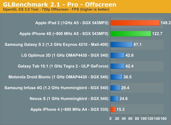 Производительность графического чипа iPhone 4S выяснилась благодаря тестам GLBenchmark 2.1. В тесте Egypt средний fps составил 73,1 против 42,5 у Samsung Galaxy S 2 и 20,4 у LG Optimus 3D, а в тесте Pro iPhone 4S показал 122,7 кадра против 67,1 fps у Galaxy S 2 и 42,6 у Optimus 3D. Как видно из тестов, смартфонам HTC, Samsung и LG не помогают ни двухъядерные процессоры с большей частотой, ни большой объем ОЗУ. Теперь поклонники разных марок могут честно сравнивать устройства 2011 года – неуместных сравнений с прошлогодним iPhone 4 больше не будет. Евгений Макаров. Mobiltelefon.ruПо материалам anandtech.com Джерело: mobiltelefon.ru Обговорення новиниКоментариев пока никто не оставил. Станьте первым! Попередні новини