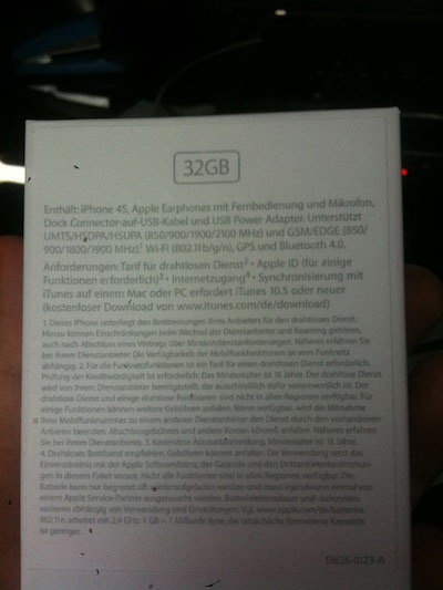 Один из немецких пользователей каким-то образом получил Apple iPhone 4S раньше времени (релиз в Германии назначен на 14 октября). Он любезно сфотографировал коробку и телефон, а также снял один скриншот сервиса Siri.