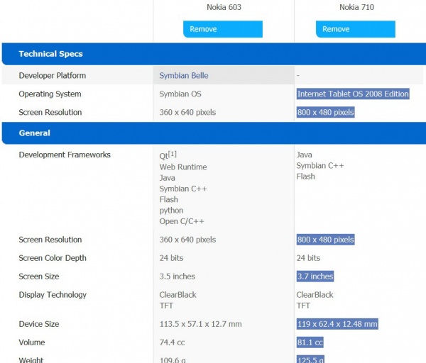 На сайте разработчиков Nokia обнаружен не анонсированный смартфон Nokia 710 (в настоящее время все упоминания о нем уже затерты). В графе ОС фигурирует Maemo Internet Tablet 2008, однако аппаратные характеристики указывают на другую систему – Windows Phone. В Nokia 710, по всей видимости, будет использоваться одноядерный процессор с частотой 1,4 ГГц, 3,7” сенсорный дисплей ClearBlack TFT с разрешением 800 х 480 точек, 5-Мп камера с широкоугольной 28-мм оптикой и функцией записи HD-видео (30fps), 512 Мб ОЗУ, 8 Гб внутренней памяти. Емкость батареи настораживает (820 мАч), хотя время работы хорошее: до 400 часов в режиме ожидания, до 5 часов при 3G-браузинге, 7 часов в режиме разговора. ![]()