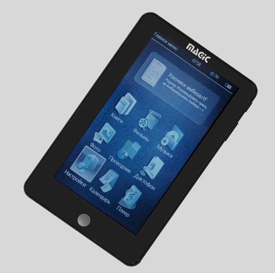 Одним из элементов устройства, вне сомнения, обращающим на себя внимание, является шикарный сенсорный TFT-дисплей с разрешением 480х800 пикселей и соотношением сторон 16:9. При помощи дисплея такого формата пользователь может не только длительно читать книги, но и просматривать целые сериалы, что говорится, «без права перерыва на кофе». Отрадно и то, что глаза при этом совершенно не устают, работает ли пользователь с MAGIC E701 всего пару минут или же несколько часов кряду.